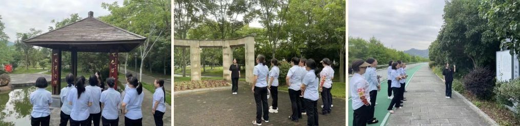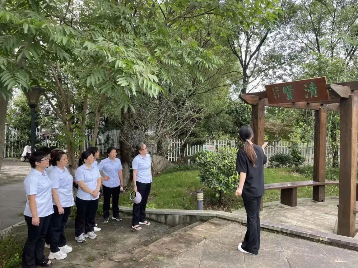 步入清廉文化园,跟随着讲解员的指引,宿管员们依次参观了清贤廊、听江亭、曦园等地。讲解员解读了清廉文化园“三物、三廉、三式”的设计理念,并结合宿管工作举例道:“就像宿管员每天检查宿舍水电及公共设施安全,看似琐碎,实际上是反映了一种廉洁从业、责任担当的工作态度。”
