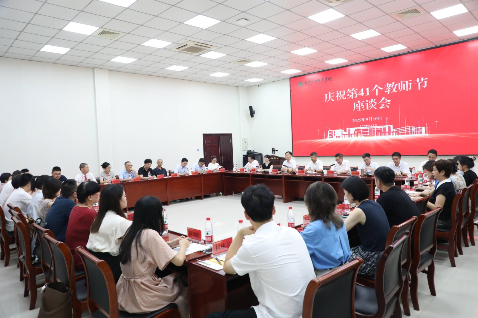 为热烈庆祝我国第41个教师节,大力弘扬教育家精神,加快建设教育强国,营造尊师重教的浓厚氛围,团结凝聚广大教师以更加奋发有为的精神状态投身教育强国建设实践,加快推进学校高质量发展,9月10日下午,我校在成教培训中心召开教师节座谈会。