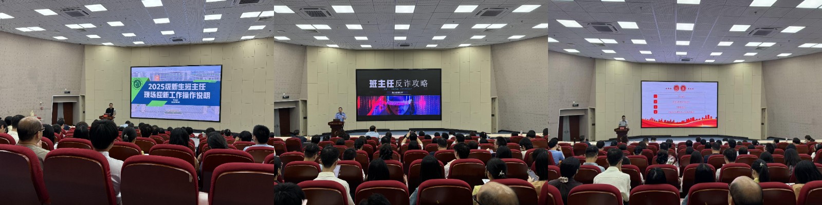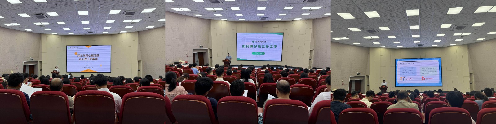 培训会围绕迎新工作业务和素质能力提升2个主题展开,特别邀请了校警驿站民警,校统战部、心理健康发展与指导中心和医务室负责人以及带班经验丰富的优秀班主任,开展了涵盖实务操作、安全警示、政策解读、心理健康等多个维度开展专题培训,为新生班主任顺利开展工作夯实了基础。