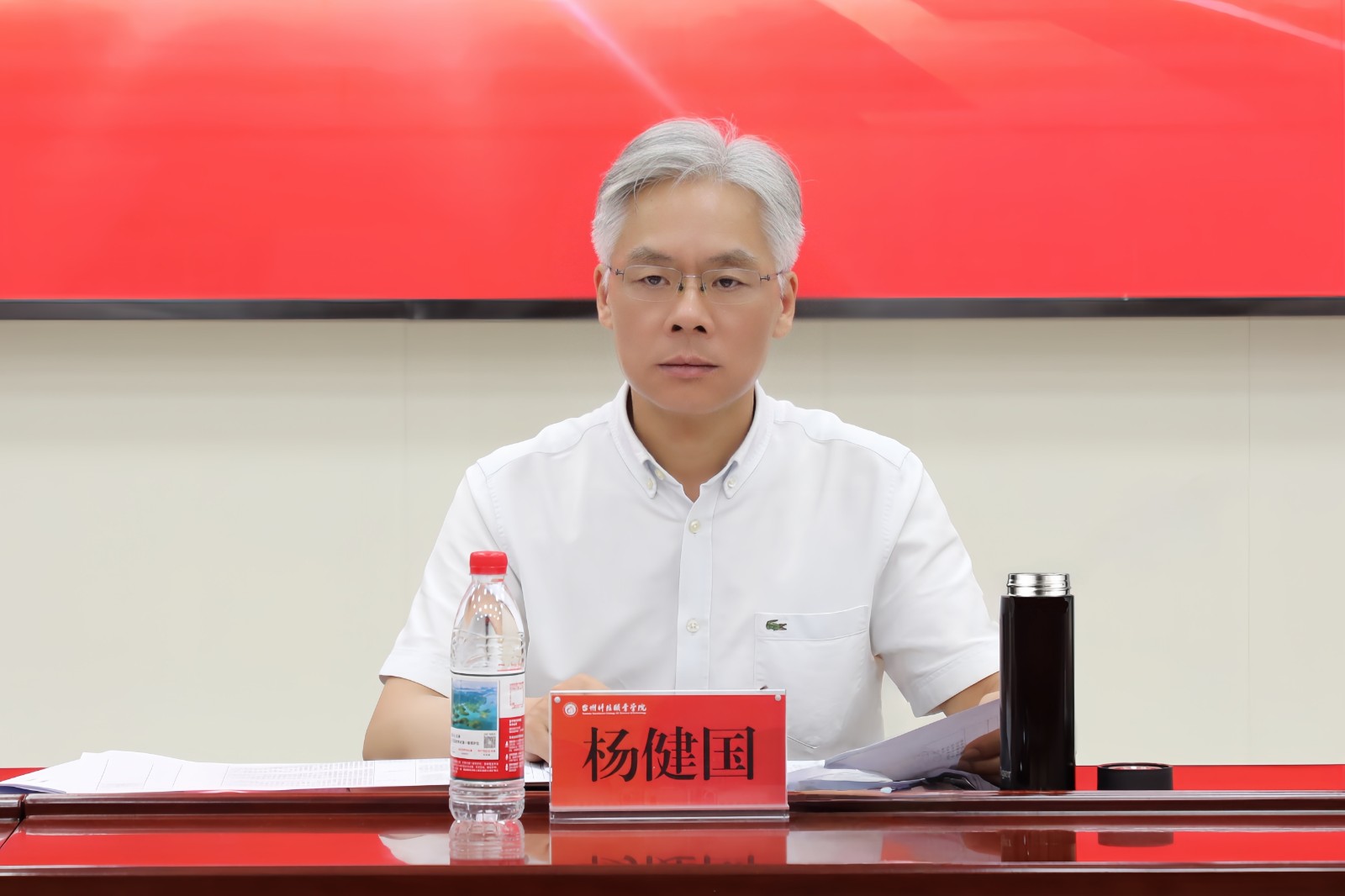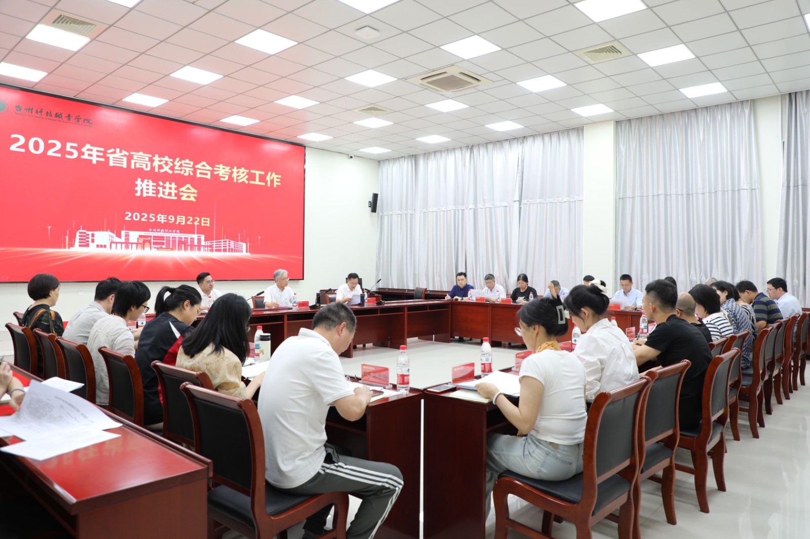 9月22日下午,我校在成教培训中心召开2025年省高校综合考核工作推进会。校长杨健国出席会议并讲话。会议由党委副书记金松主持。校党委委员、组织部(统战部、人才办)部长朱剑,各指标责任部门负责人参加会议。