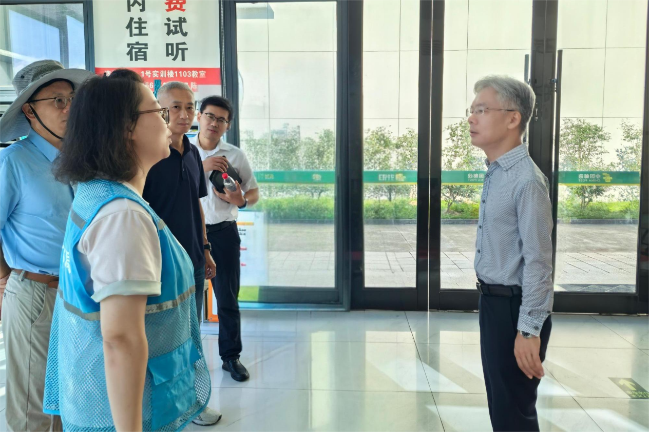检查组一行先后检查了校门口、外卖柜、菜鸟驿站、体育馆、在建工地、学生食堂、教工食堂、学生宿舍、实验室、指挥中心等地,并走访了校警驿站。杨健国听取了各单位负责人的情况介绍,详细询问了日常安全管理措施、假期工作安排及应急处理预案,并就发现的问题进行现场指导、要求立行立改。
