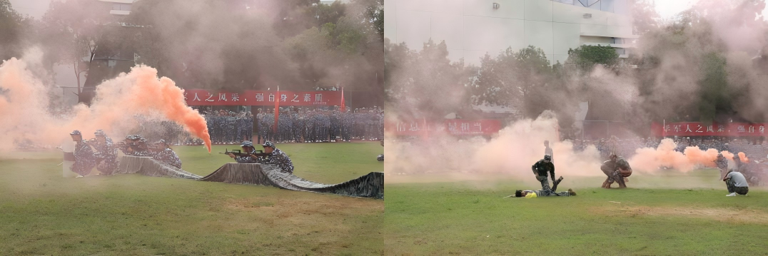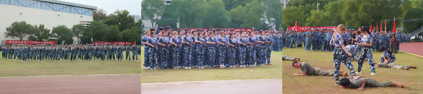 上午8时,铿锵的步伐、嘹亮的口号,军体拳方阵入场。随着教官一声令下,队伍依次排开,擒敌拳、刺杀操等动作干净利落、口号振奋人心。