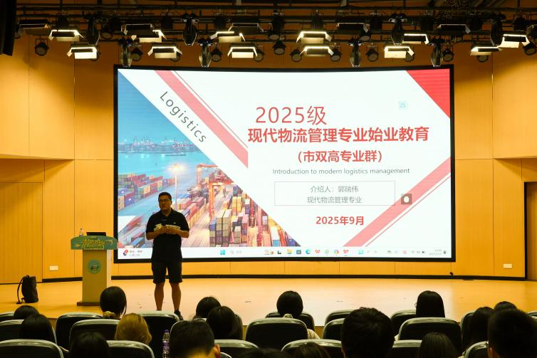 在校文化礼堂,现代物流管理教研室主任郭瑞伟为新生解读“职业教育”的核心内涵,强调物流专业教学紧扣行业实操需求;随后详细介绍专业特色、课程设置与师资力量,结合前沿数据剖析就业环境与岗位方向,并分享物流技能省赛、国赛案例及优秀学长事迹,鼓励新生平衡学业与热爱,在实践中提升技能。